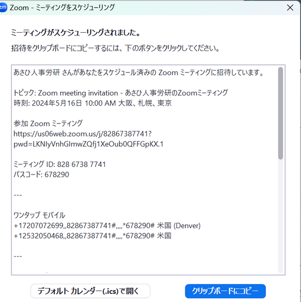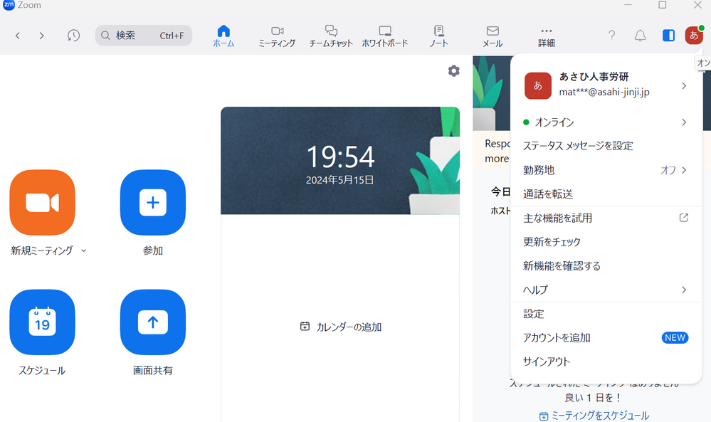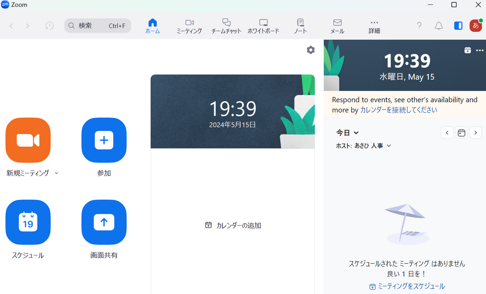 終わったら、ZOOMの右上の赤い「あ」のボタンを押して